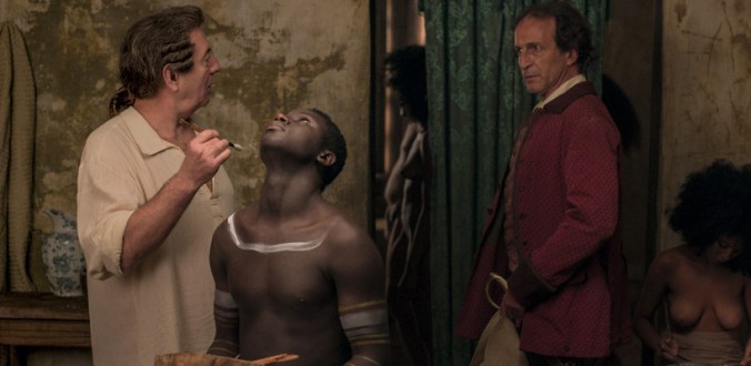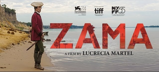 The source of this story is a novel from 1956 of the same tiltle by Antonio Di Benedetto, [only translated into English in 2016]. Set in 1790 somehere on a river dividing Argentina from Paraguay, the protagonist is Don Diego de Zama (Daniel Giménez Cacho) a magistrate [‘corregidor’ government official}. We first see him in the film [as in the poster] staring out across the river, symbolising his frustrated hopes of a move: away and upward socially and economically. The book offered a subjective narrative and the film translates this into a hallucinatory telling that is full of ambiguities. The story takes in three different periods of Zama’s sojourn in this provincial city, best identified by the changing face [i.e. actor] of the governor under whom he serves. The first two periods focus on his recurring requests for a transfer and the contradictions of his work, a sort of C18th ‘Catch 22’. His social position is problematic because he is an ‘Americano’, born in this ‘new world’ where colonial characters from Europe control society and power. His ambiguous status is reflected in his attempt at sexual conquest, both amongst the European and the indigenous women. These first two thirds of the film have a surreal quality with elliptical editing and moments of bizarre humour when, for examples, animals cross the frontier between the world of nature and that of human society.